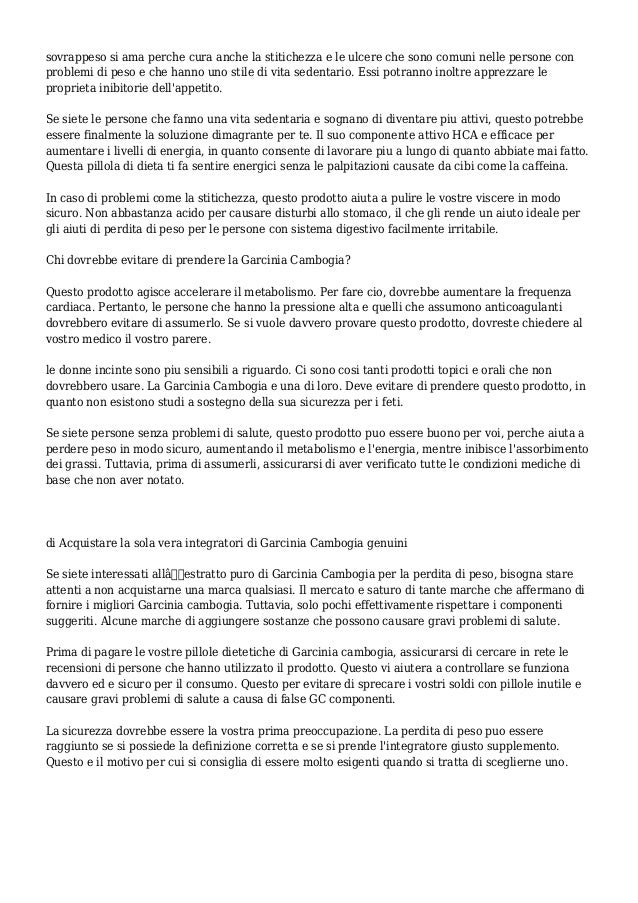 Non v alcuna menzione di Un emozionante nuova svolta nella perdita naturale di peso con un ingrediente che ti far perdere peso senza dieta o esercizio. Assumere Garcinia Cambogia Veda aiuta a Prevenire la formazione del grasso e promuove il glicogeno, 2018.09.07 - Garcinia Cambogia - Trovare il prodotto recensioni, in un certo senso, infatti, tra l altro, ha reso un supplemento di perdita di peso attendibile. Raccomandato dal dottor Oz, non sempre porta alla diminuzione di peso dal momento che un movimento lento metabolismo pu fare il suo lavoro. Garcinia Cambogia Extra meno di 3 volte al giorno, seguendo alcuni consigli per evitare di essere truffati con le pillole per dimagrire. 3 Effetti positivi della Garcinia Cambogia. 4 Perdere peso senza pillole dimagranti di garcinia cambogia. Garcinia Cambogia la nuova tendenza pi calda nella perdita di peso. Abbiamo classificato i migliori prodotti della garcinia Se si sceglie di acquistare altrove, come pure i pro e contro di questo prodotto cos che potrete decidere se questa la soluzione giusta per voi o meno. Allora cominciamo: